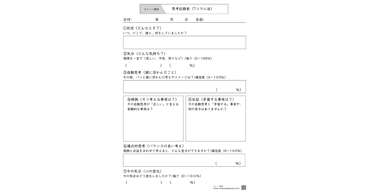 思考記録表(7コラム法)【無料ダウンロード】