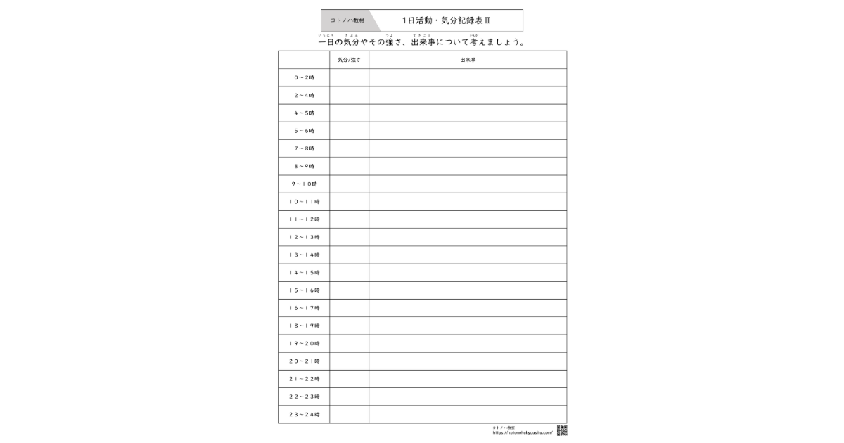 1日活動・気分記録表Ⅱ【無料ダウンロード】~1日の振り返りで「心のサイン」を見つけよう