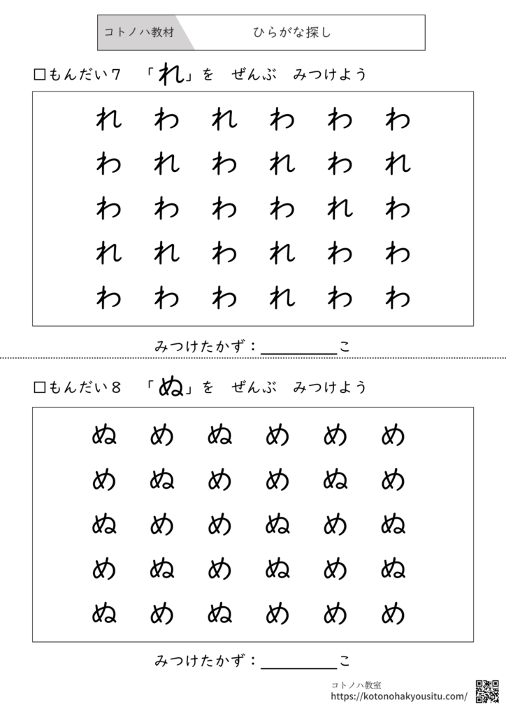 ひらがな探し【無料プリント】~「ぬ」と「め」、「さ」と「ち」/文字の見間違いが多い子のおすすめ学習プリント