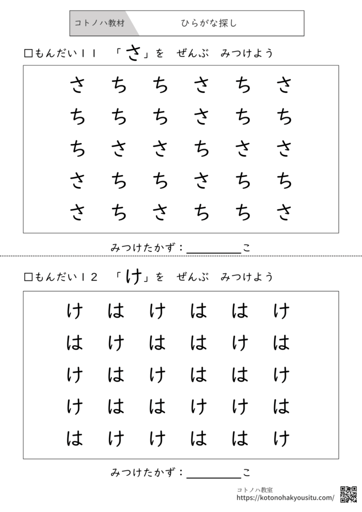 今回はそのようなお悩みを解消できるように「文字の形を見分ける力」や「目を動かす力」のトレーニングを目的でプリント作成しました。