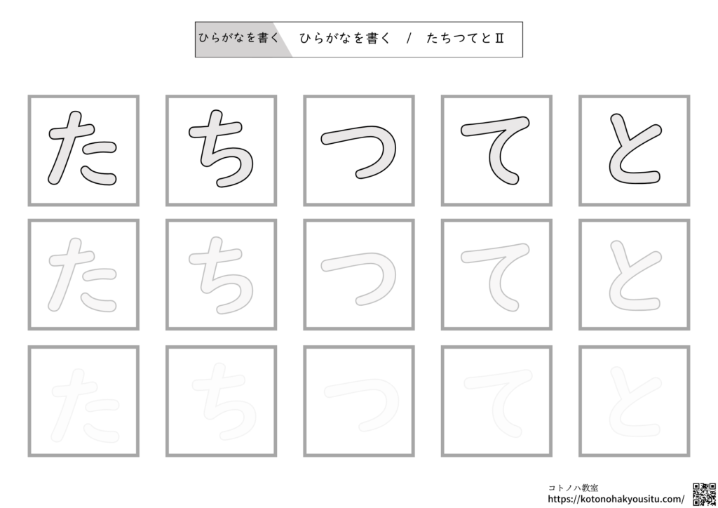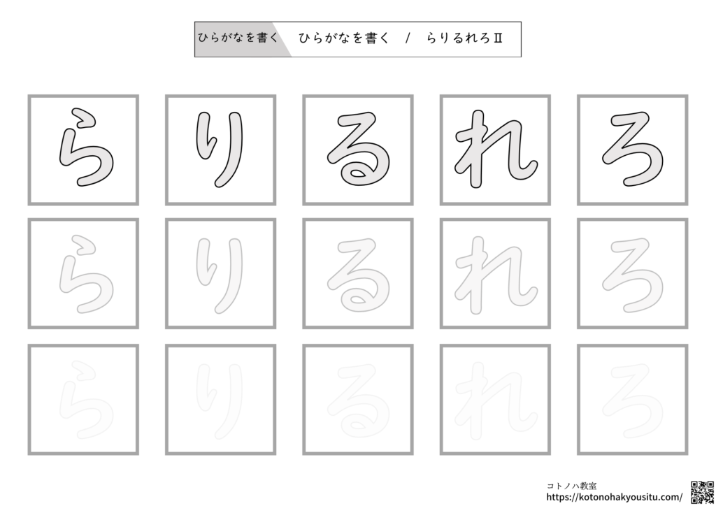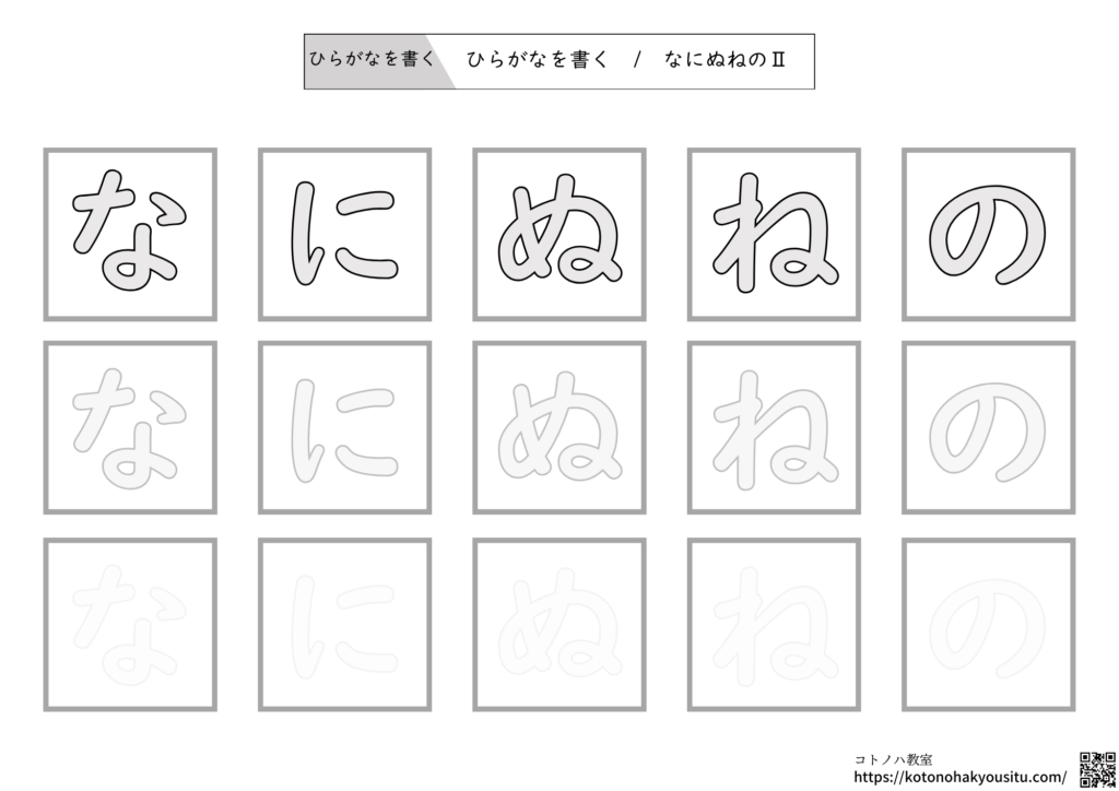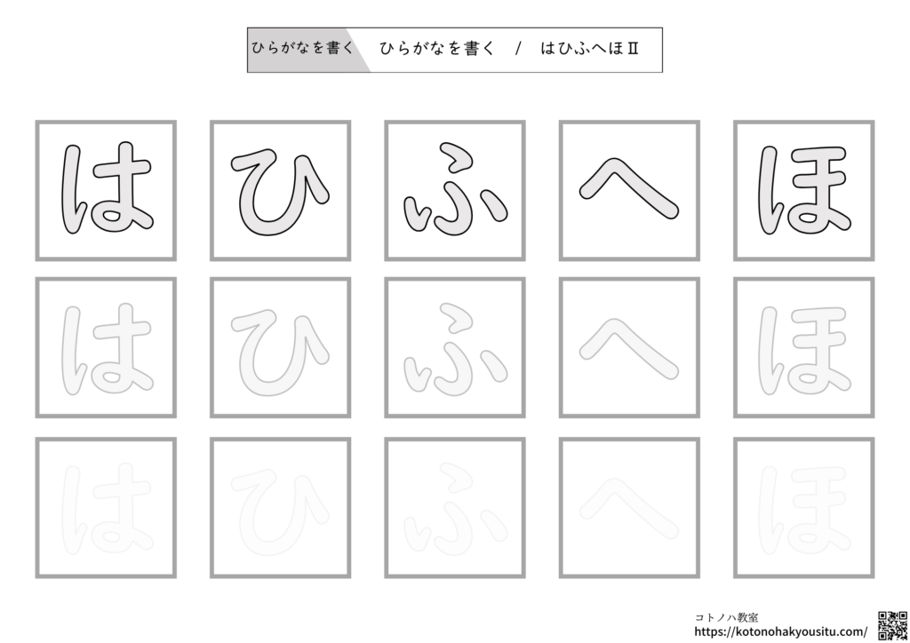 ひらがなを書く・一文字Ⅱ【無料プリント】~ひらがな一文字ずつ書いて覚えるワーク