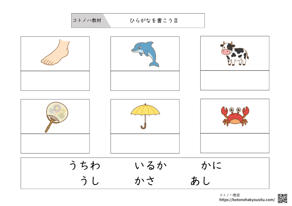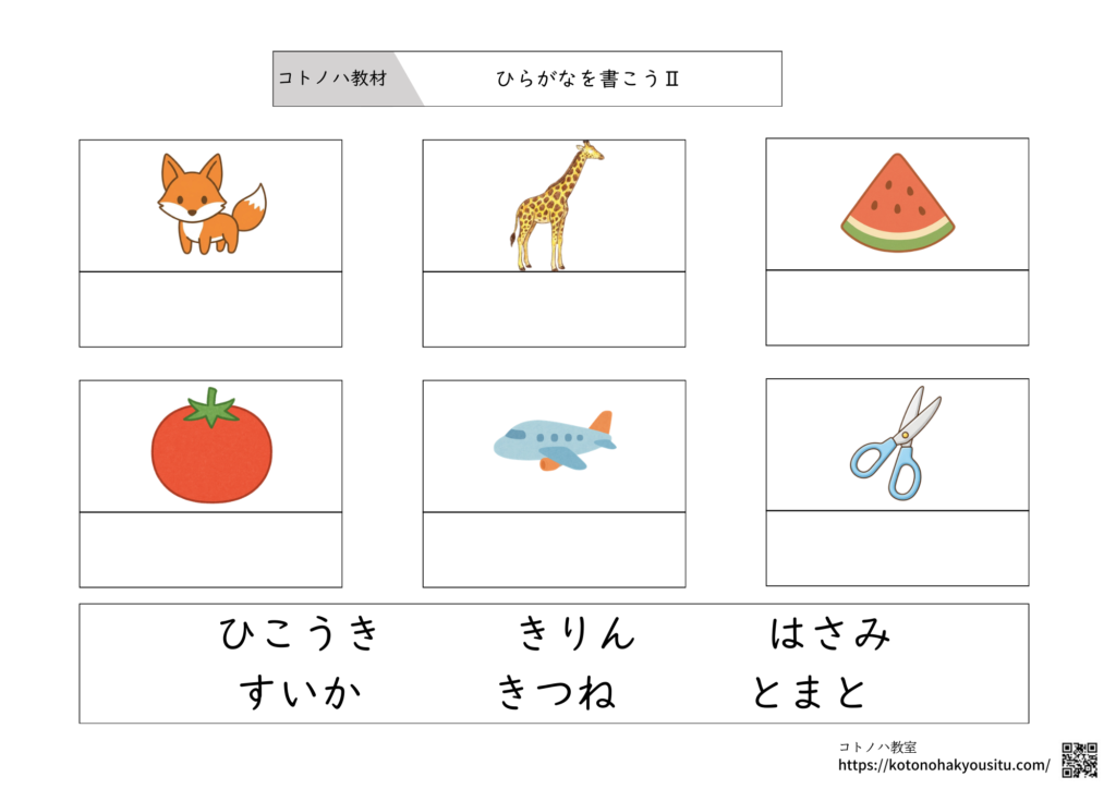 ひらがなを書こうⅡ【無料プリント】~選択肢から選んで書き写す!ひらがな単語プリント