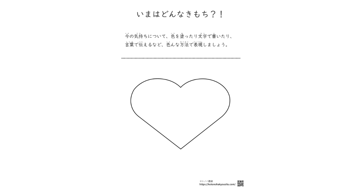 今の気持ちについて色や文字、言葉などを使って表現するプリントです。