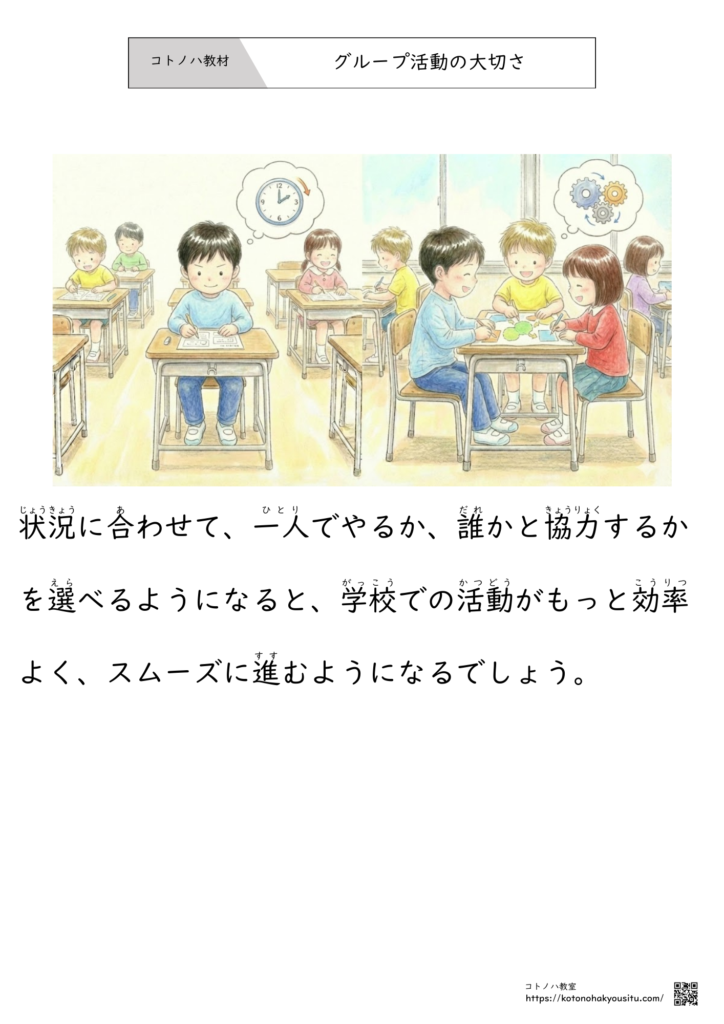 本教材では、集団活動が子どもたちの発達に与えるメリットを整理し、現場でどのように声をかけ、どのような経験を積ませるべきかを考えることができます。