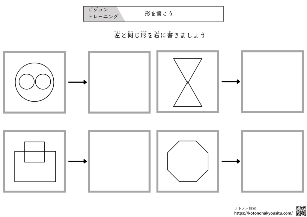 ひらがなを書くだけでなく図形を見て書くということは形態そのものを捉える能力が必要です。