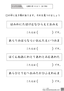 言葉を見つけよう【無料プリント】~ひらがなの中から言葉を見つけるワーク