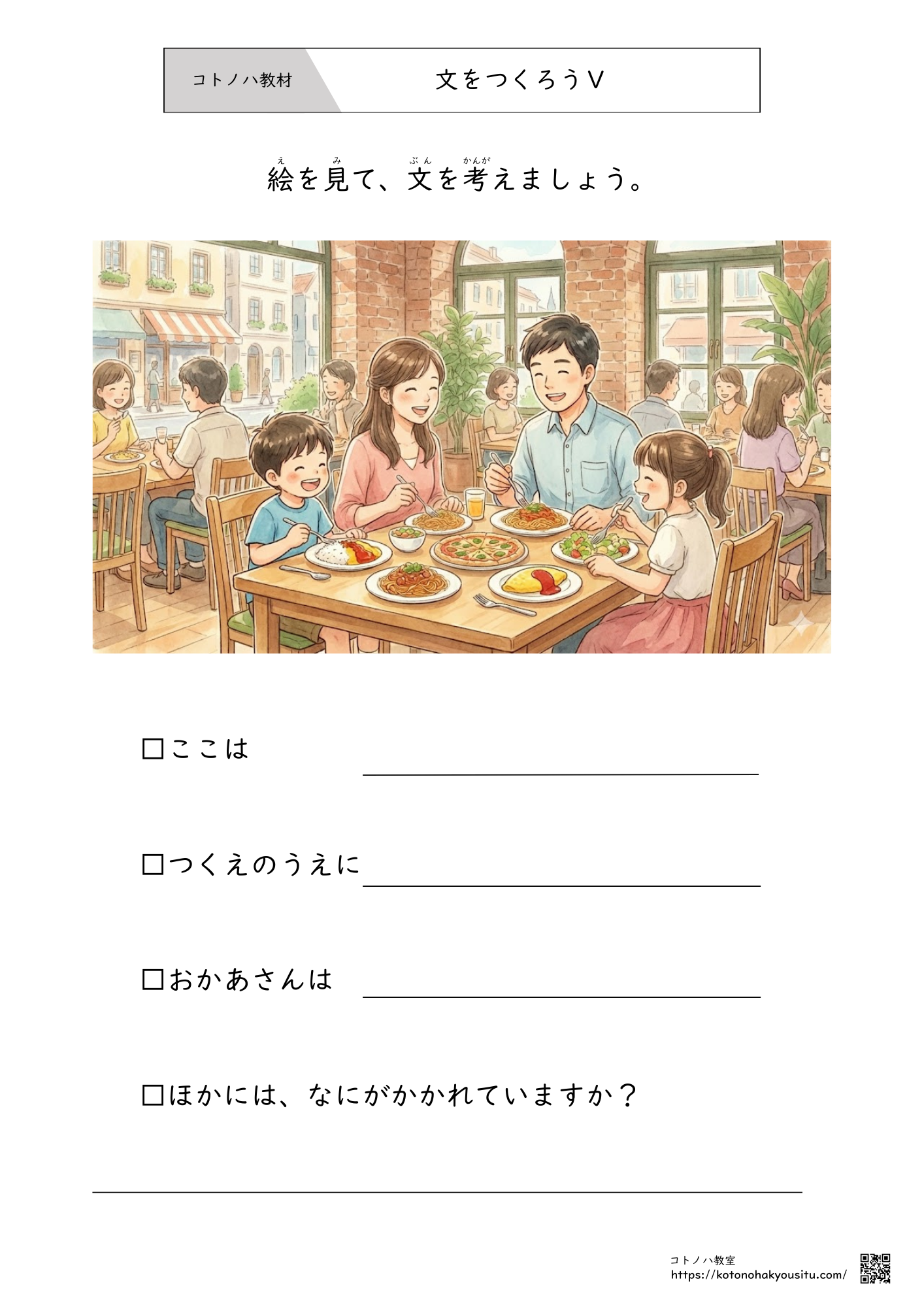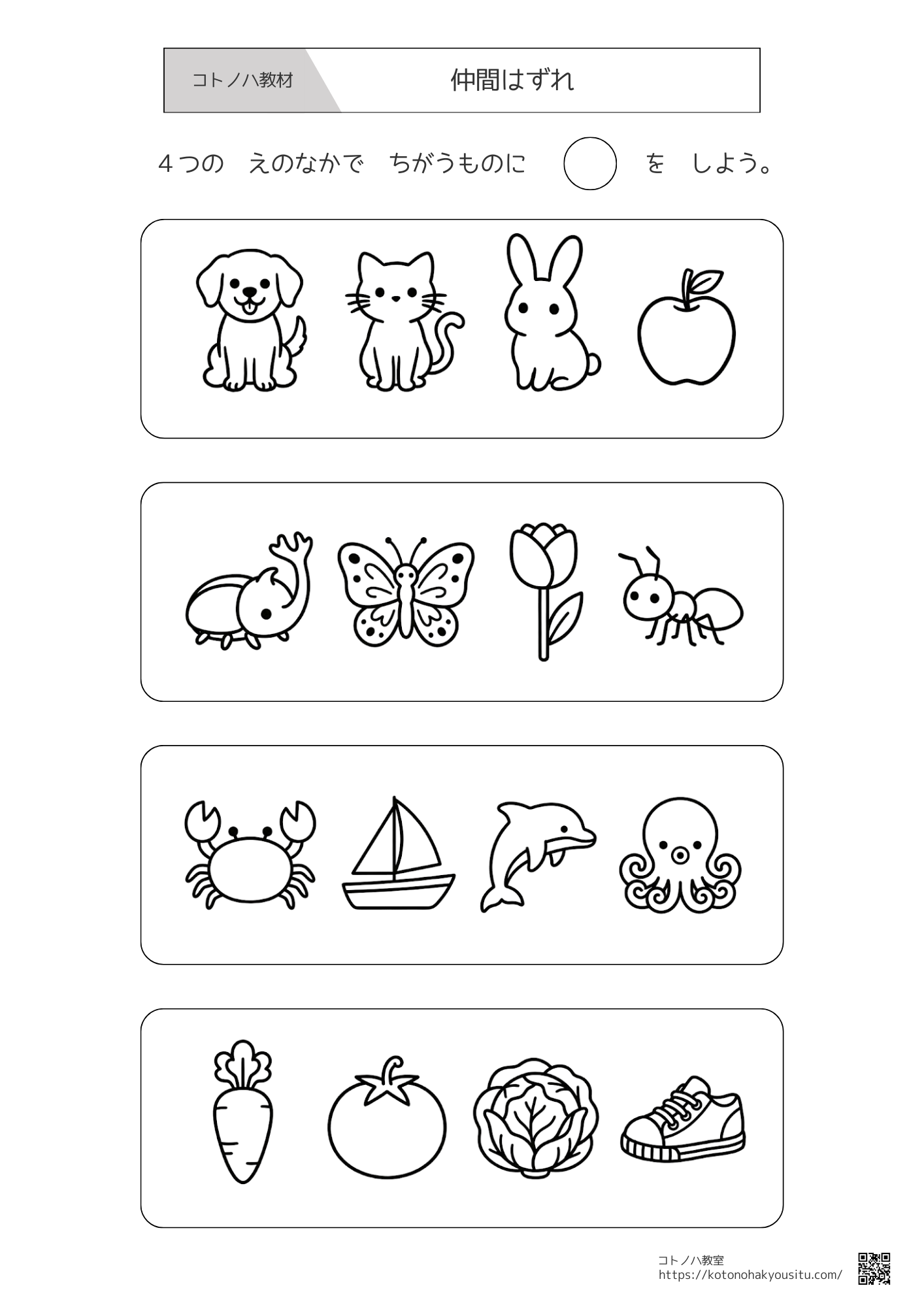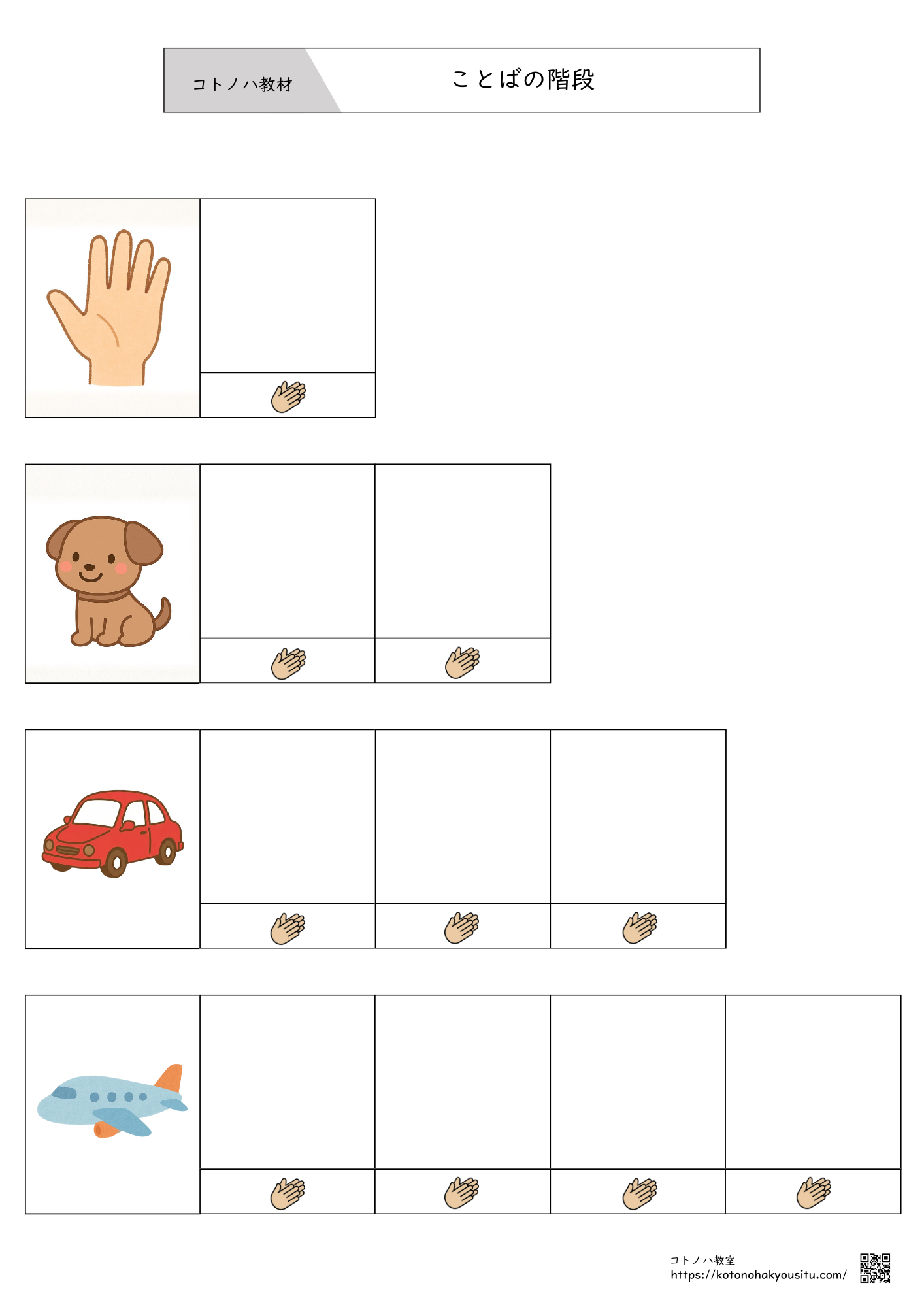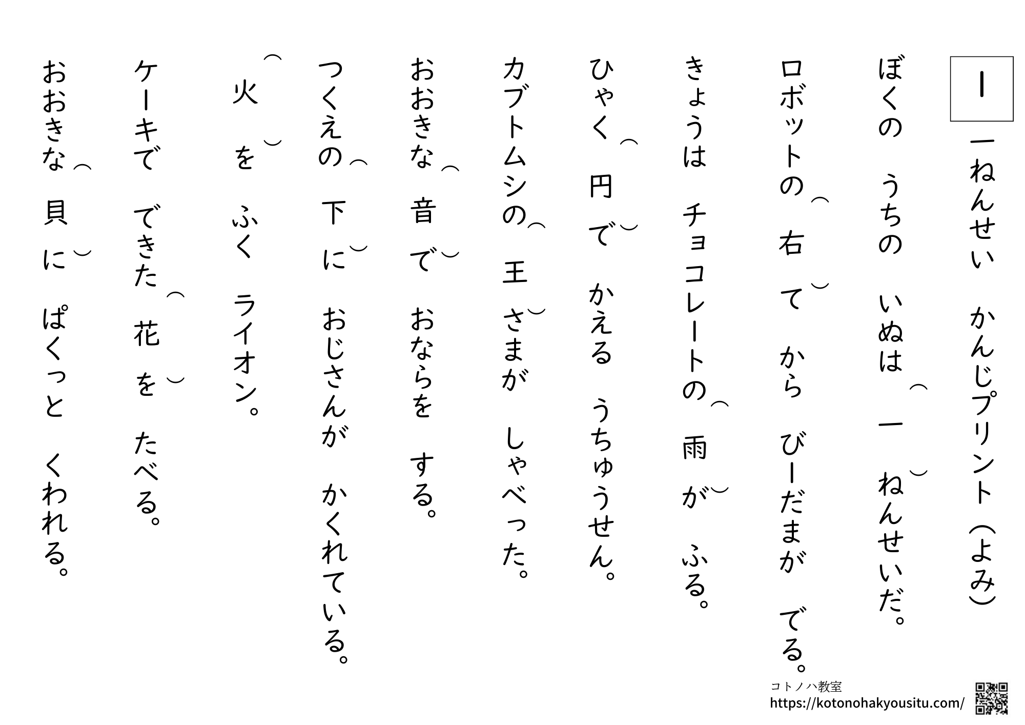 こちらのページではコトノハ教室が作成した教材をまとめています。各教材のリンクをクリックするとそれぞれのページへ移動できるため、そちらからダウンロードして使って下さい。