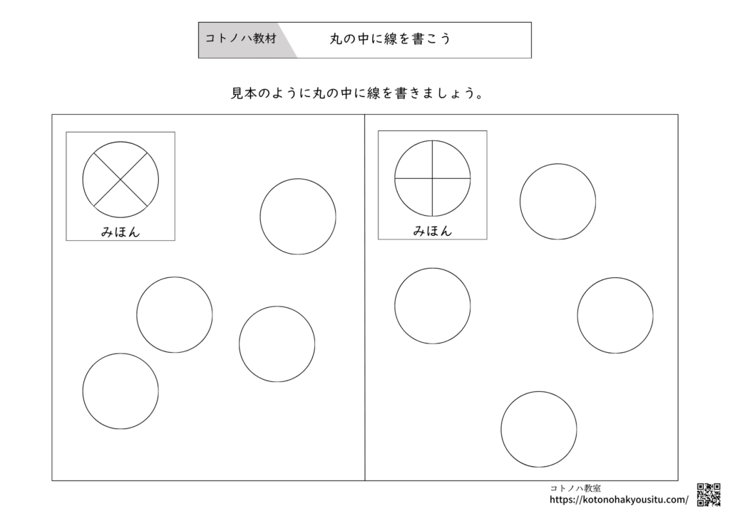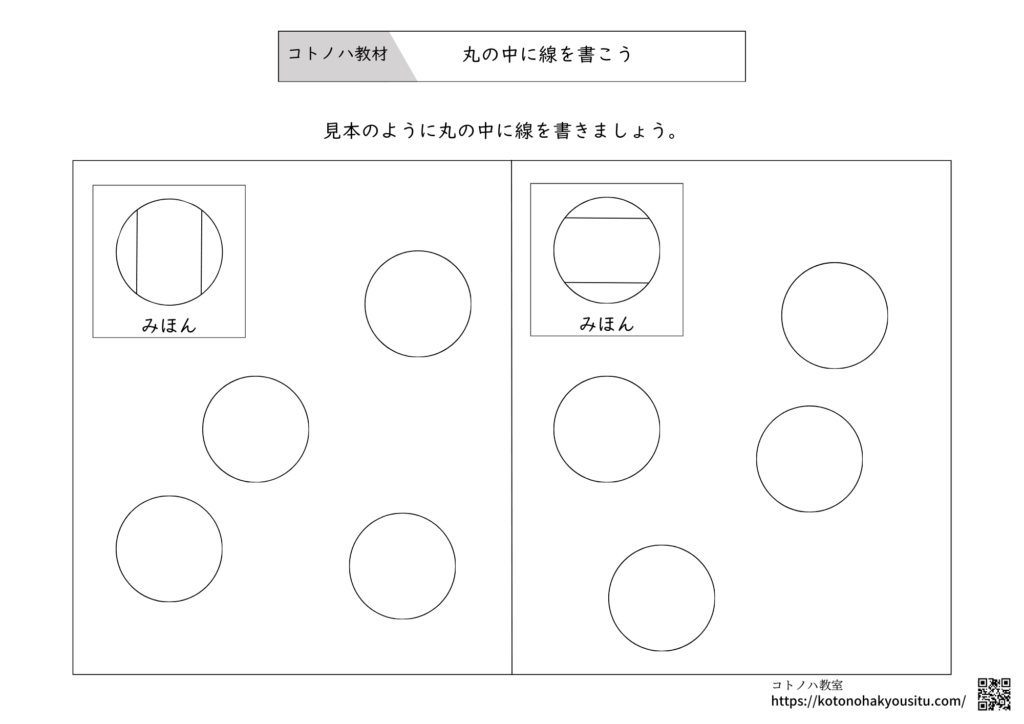 丸の中に線を書こう【無料プリント】~見本と同じように線を書こう