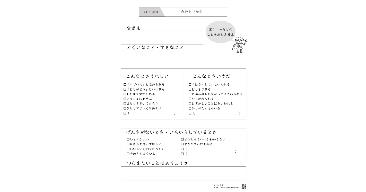 トリセツを書けたら、家族や先生、友達にも見せてあげることも人との繋がりができます。