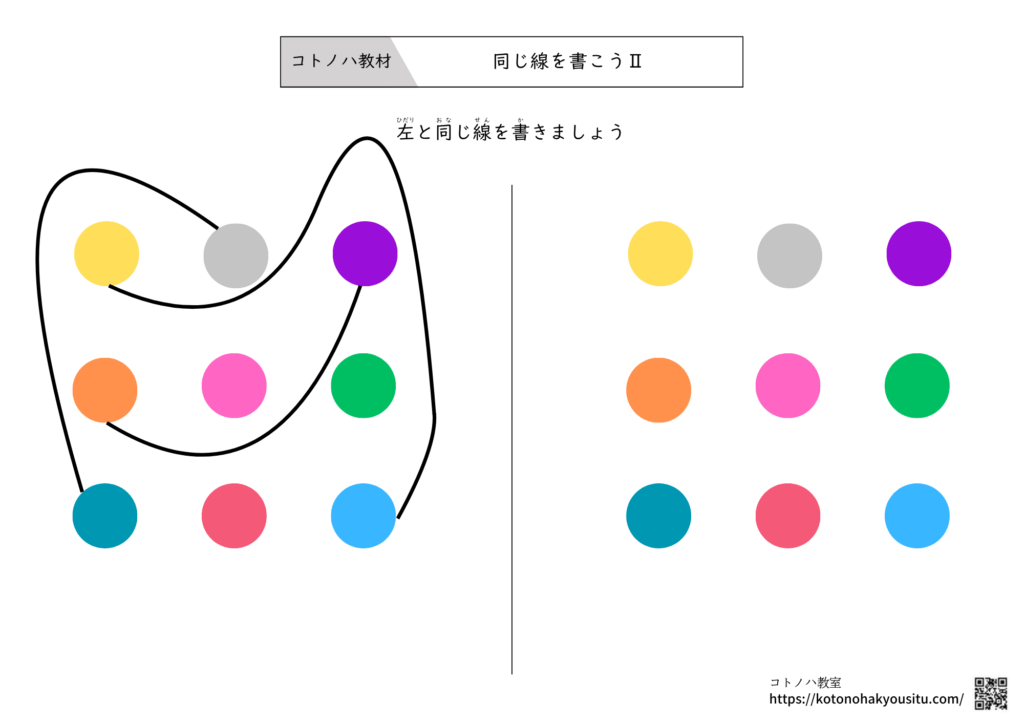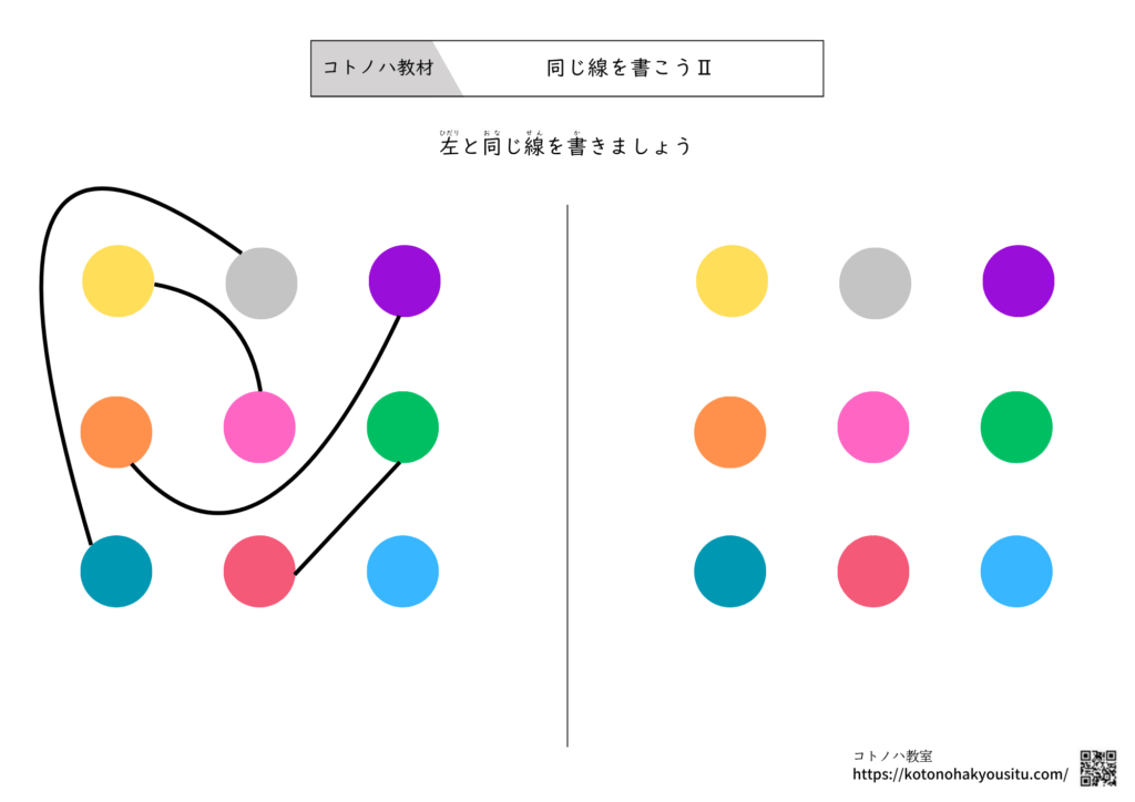 HOME > 無料教材 > ビジョントレーニング > 同じ線を書こうⅡ【無料プリント】~見本と同じように線を引きましょう 2026年1月24日 同じ線を書こうⅡ【無料ダウンロード】 ①同じ線を書こうⅡ ②同じ線を書こうⅡ ③同じ線を書こうⅡ ④同じ線を書こうⅡ ⑤同じ線を書こうⅡ ⑥同じ線を書こうⅡ 発達の気になる子の 学習・運動が楽しくなる ビジョントレーニング (発達障害を考える・心をつなぐ) ¥1,760 (2026/02/01 18:53時点 | Amazon調べ) Amazon \楽天ポイント4倍セール!/ 楽天市場 ポチップ 学習・運動が好きになる 1日5分!眼と体を楽しく動かす ビジョントレーニング・ワークブック ¥1,604 (2026/01/28 07:12時点 | Amazon調べ) Amazon \楽天ポイント4倍セール!/ 楽天市場 ポチップ -ビジョントレーニング -教材
