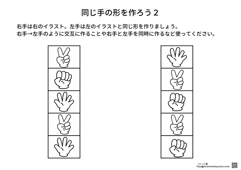 同じ手の形を作ろう【無料プリント】〜見本と同じ手の形を作るワーク・プリント〜
