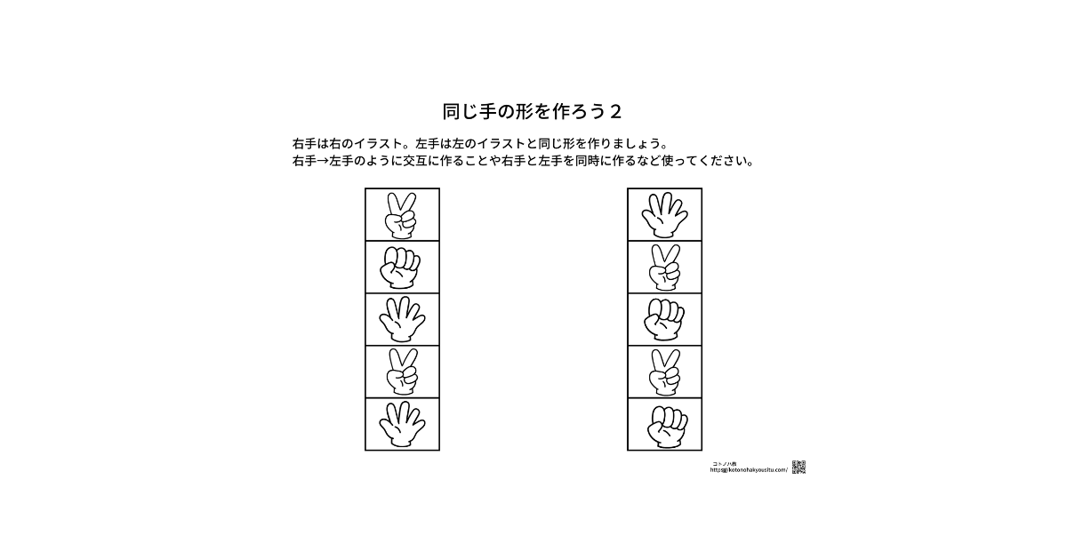 同じ手の形を作ろうⅡ【無料プリント】〜見本と同じ手の形を作るワーク・プリント