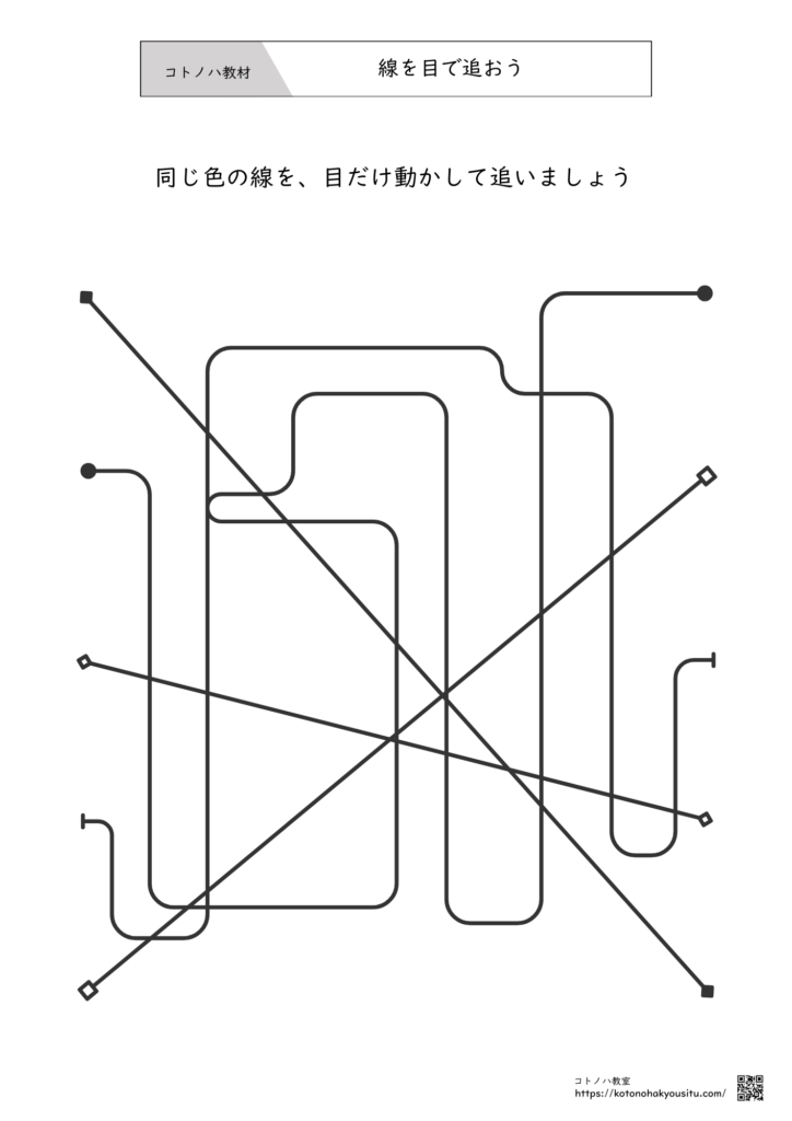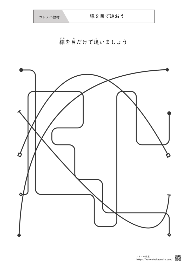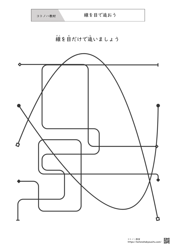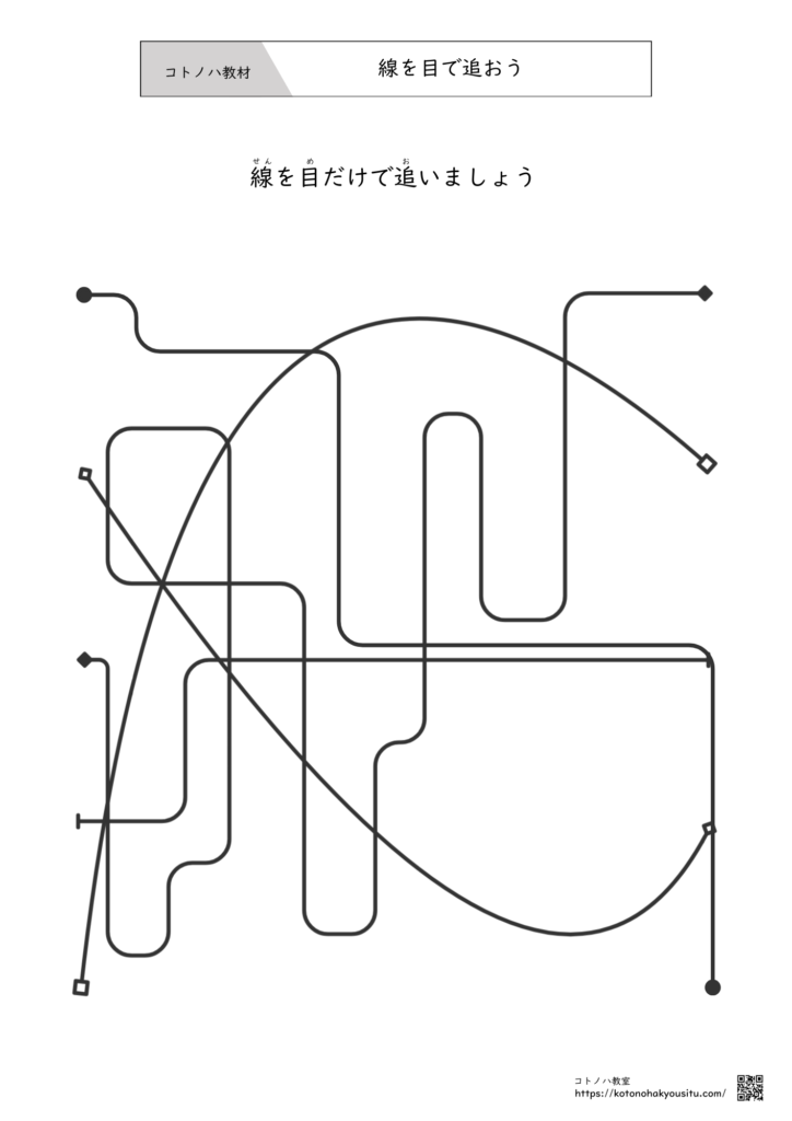 指を使わずに目だけで線をたどることで、見る力を楽しみながら鍛えることができます。