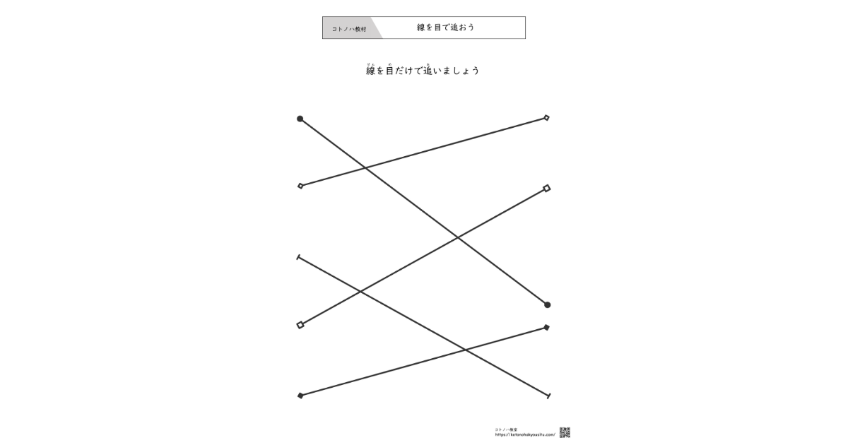 指を使わずに目だけで線をたどることで、見る力を楽しみながら鍛えることができます。