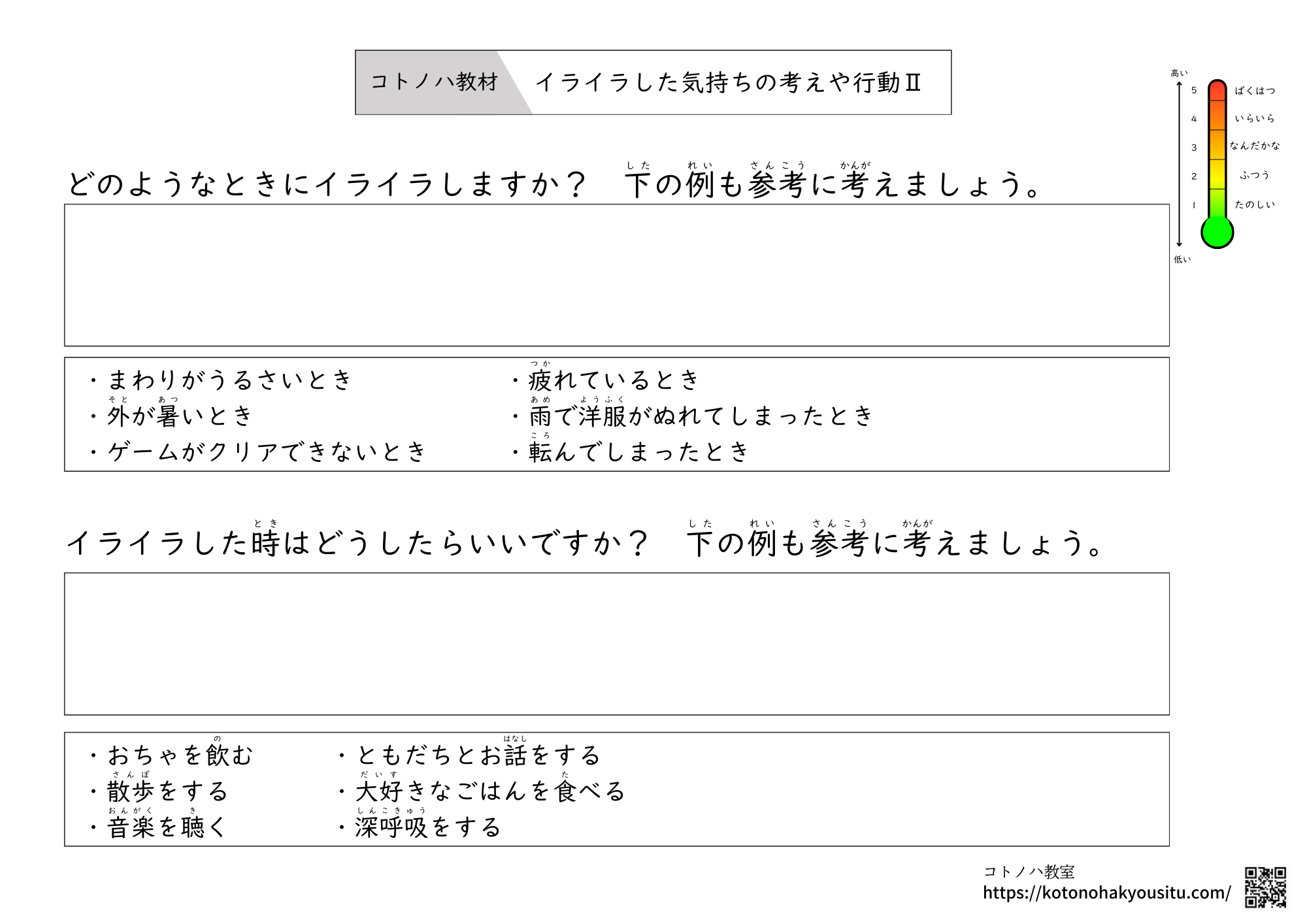 友達との上手な関わり方や家庭や学校などの社会ルールを学ぶことを目的とした教材を用意しています。実際の日常生活と照らし合わせて取り組んでいきましょう。